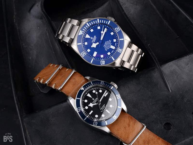 帝舵雪花潛行者我們總是配備啞光表盤,這是20世紀70年代的經典子表盤。藍色和黑色表盤均與匹配的表圈嵌件配合使用。民用表款的表殼均采用拉絲表耳頂部和拋光表殼側面。有趣的是,這兩款手表和我們所擁有的最后一款MN78都有完全啞光的表殼。我們過去在MN發行的帝舵表上看到過這一點,當然,勞力士MilSubs也有完全啞光的表殼。我們可以推測,這樣做是為了減少手表上可能出現的任何潛在眩光,這在戰斗情況下可能是有問題的。