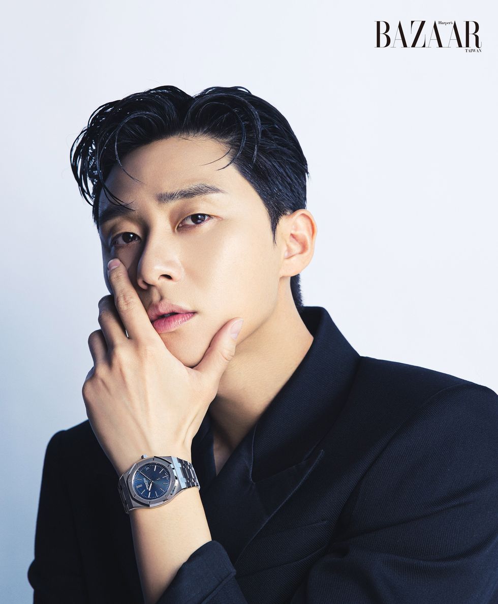 在最后一組照片中,樸敘俊搶先戴上的是慶祝皇家橡樹5o周年推出的Audemars Piguet Royal Oak皇家橡樹系列「JUMBO」超薄腕表,39毫米款式。表面上低調(diào)沉穩(wěn)又散發(fā)細致光澤的「云夜藍50」色調(diào),跟他身上的西裝氣質(zhì)很相襯。