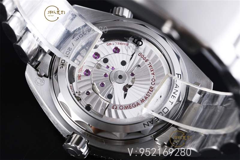 VS自主研發(fā)的8900機(jī)芯是真正的自主一體式機(jī)芯,不再是套甲板,機(jī)芯的每顆螺絲和寶石都具備真功能,不再是裝飾片;擺輪位置和擺輪大小同原裝完全一致,黑化螺絲、擺輪及發(fā)條盒,nivachoc避震,讓外觀細(xì)節(jié)上保持與原裝高度一致;時(shí)針快調(diào),通過(guò)撥動(dòng)指針調(diào)日歷,功能上與正品同步;機(jī)芯采用雙發(fā)條盒,儲(chǔ)能可達(dá)到和正品一樣60-72小時(shí),并且該機(jī)芯也非常穩(wěn)定此機(jī)芯的研發(fā)突破,寓意著歐米茄海馬系列提升至前所未有的復(fù)刻高度。