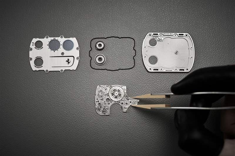 至于Richard Mille的RM UP-01 Ferrari腕表是次挑戰(zhàn)成功,表殼僅厚1.75毫米,重2.87克,為了打造出此等薄度,所以摒棄一般采用的疊加齒輪設(shè)計(jì),而是將零件分散在平面之上。新作主要采用了常用于航太科技以及汽車工業(yè)中的五級(jí)鈦合金來制作,這種物料的強(qiáng)度可以達(dá)到1,000MPa,即是不銹鋼的五倍之多,有效抵抗沖擊及撞擊,畢竟與Ferrari合作,也需要符合車手的需要。