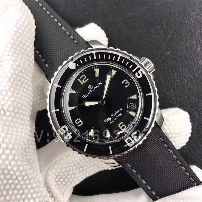 N廠寶珀五十尋采用單向旋轉(zhuǎn)表圈,帶有夜光功能,潛水能做到精確計時,雖然五十尋走的是復(fù)古路線,但它尺寸并不是老式的。寶珀五十尋表徑45MM,表殼采用全拋光材質(zhì)(今年也推出了全碳素版本)。