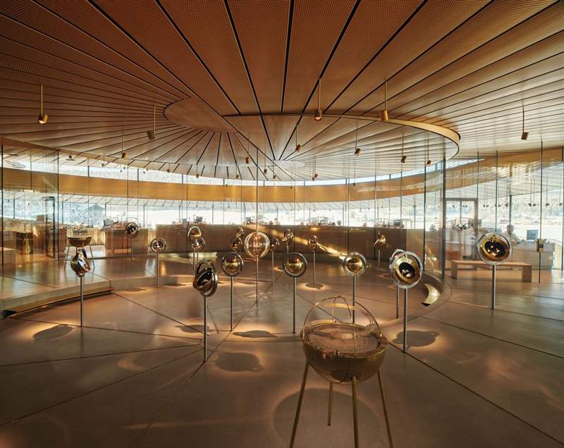 這棟有著玻璃帷幕的螺旋式結構展館,將博物館與工作坊和諧地納于其中。「此建筑和場景設計蘊含的技術內涵,與大復雜功能腕表的機芯遙相呼應。」Audemars Piguet歷史遺產及博物館總監Sébastian Vivas與我們分享道。