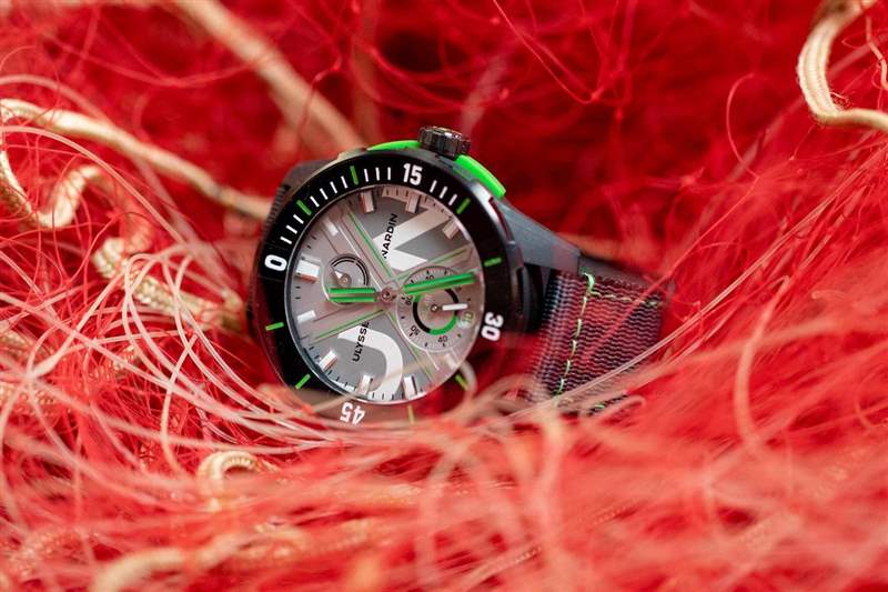 環保議題是這幾年許多品牌努力的方向,而雅典表(ULYSSE NARDIN)在2020年時發布一款Diver Net概念表,首度嘗試使用回收材質打造手表,而今年將其正式商品化,選擇世界環球帆船賽聯名限量表上率先運用,從表殼、底蓋到表帶皆是回收再生材質制成,甚至是機芯也使用再生精鋼與黃銅材質制作,全面落實環保理念。