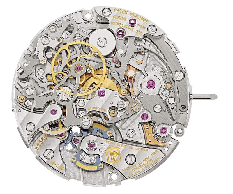 Ref. 5470P-001是百達(dá)翡麗在計(jì)時(shí)碼表領(lǐng)域的全新力作,表殼的樣式來自于Ref. 5370,至于全新研制的CH 29-535 PS 1/10機(jī)芯,則是以CH 29-535 PS為基礎(chǔ)下改制而成;CH 29-535 PS是2009年問世的百達(dá)翡麗新世代自制計(jì)時(shí)機(jī)芯,也是目前百達(dá)翡麗所有有計(jì)時(shí)功能的基礎(chǔ)。這次要改為1/10秒計(jì)時(shí)功能,首先得把原本機(jī)芯振頻的4赫茲提升到5赫茲,也就是振頻36,000次/小時(shí);同一時(shí)間,更高的振頻意味著更高的耗能,以及產(chǎn)生更多的震動(dòng),在此百達(dá)翡麗加入許多專利技術(shù),減低計(jì)時(shí)功能運(yùn)作時(shí)對準(zhǔn)確度的影響。