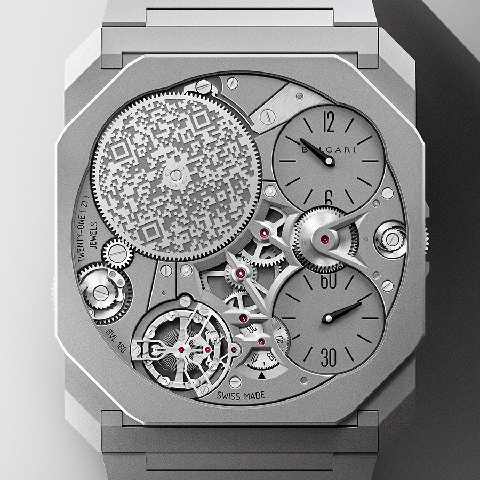 在Octo Finissimo Ultra面盤上可以看到發(fā)條盒的地方有QR Code的鐫刻,透過QR Code的掃描可以看到表款相關(guān)的訪談、制作工序、和機(jī)芯虛擬3D導(dǎo)覽等等,讓表主可以更加了解自己買的手表是什么來歷。另外寶格麗也與時俱進(jìn)搭上了NFT的順風(fēng)車,買到這十只限量版的Octo Finissimo Ultra藏家,都可以獲得專屬的NFT藝術(shù)作品,除了再度用超薄打破紀(jì)錄之外,也為品牌在NFT領(lǐng)域先進(jìn)行了一場暖身。