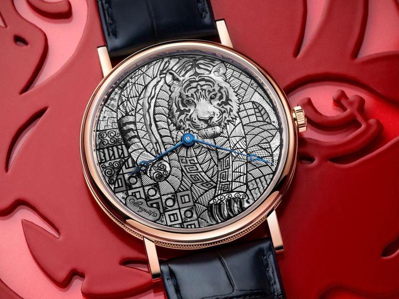 - 寶璣今年推出集「機刻雕花」與「鐫刻工藝」于一身的虎年限量作品,同時融合寫實與抽象風格,仿佛看得到老虎在面盤上從容行走的畫面,展現某種神秘力量,更有王者之姿。這種工藝的困難度在于,虎頭以浮雕細膩描繪,但其他部位則以方格組成,再飾以機雕紋路與符碼圖騰構成虎身。而要在如此微小的方格中,進行深淺不一的機雕操作,其細膩程度叫人嘆為觀止。全球限量僅8只。