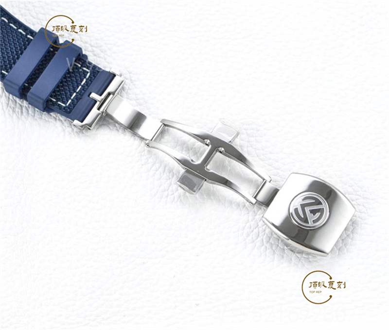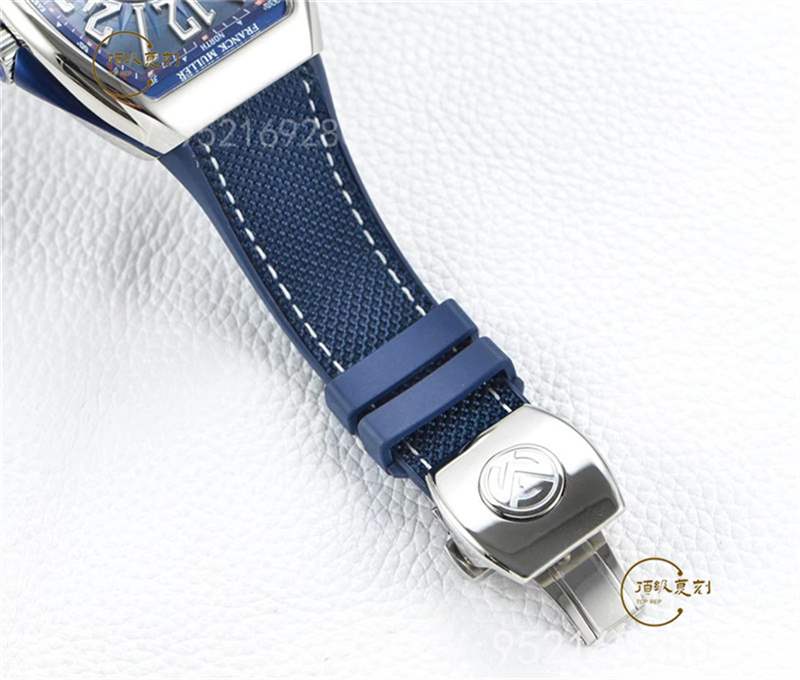 4.表帶扣,雙層表帶結構同步正品,正面采用人工纖維,背部則是天然橡膠,佩戴舒適冬暖夏涼,舒適感極佳。搭配法穆蘭經典折疊表扣,可與正品互換。