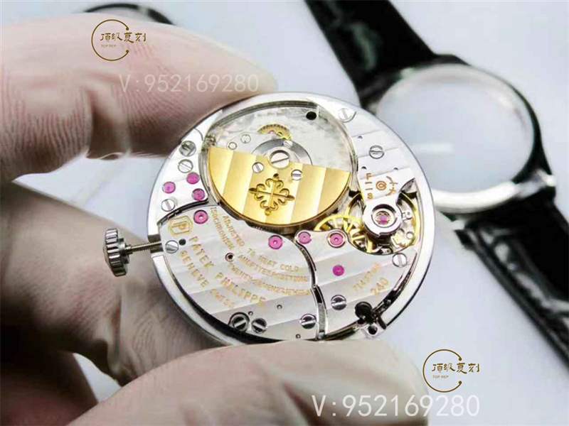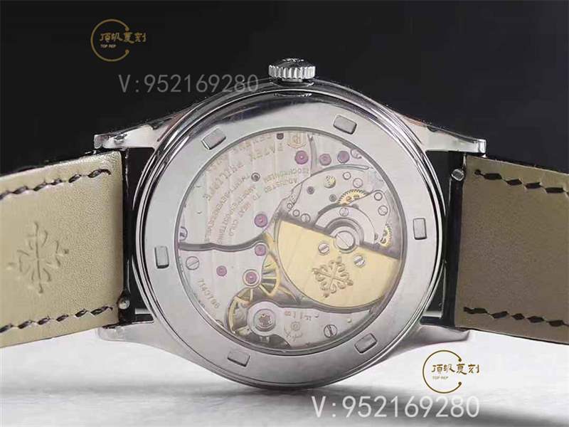 簡約干練的Calatrava圓形表殼極為低調,38.6mm的表經非常商務亦可休閑。機芯同樣誠意滿滿,搭載定制版原生兩針無歷珍珠陀機芯,可大大降低故障率。表盤同步正品工藝經過攝氏700°-850°的高溫反復燒制和16層手工微繪完成。