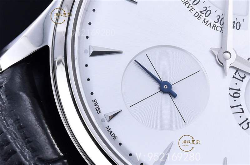 關(guān)于盤面,這是此次的重點(diǎn)之一,此次gf廠的積家小丑盤面更為細(xì)致,盤面的條釘,字體印刷,小表盤的紋路更為細(xì)膩光潔,陰陽指針我們也可以看的出清晰的工藝差。