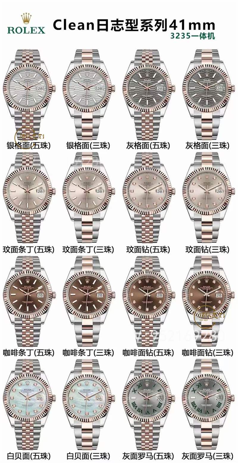 對于CLEAN廠來說,也是一個新秀廠家,當然這個廠的前身則是配件廠,主要是以配件為主。當然在后期的一個發展過程中,也是市場的需要,這個C廠也是逐步成為了一線大廠,然而對于這款腕表整體細節來說,也是一個比較到位的款,旗下的腕表款式也是非常多,就單日志來說,顏色方面就是比較多,如藍色,白色,銀色,綠蘿,還有各種間金款式都已推出,這里注意C廠并未涉及到36尺寸的開模,至于后期會不會有,這個不得而知,至少現在沒有。