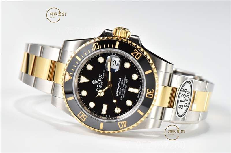 這款clean廠勞力士間金水鬼可以算得上是水鬼的升級版,整體還是延續了潛航者系列的經典造型設計,獨特904鋼材質表殼,立體時標以及指針采用的都是黃金材質,金色的表圈、金色的表冠、精鋼表殼搭配間金表鏈,不管是從整體黑金搭配還是材質選用上,這次都下了大工夫,只有這樣,才賦予了這款腕表尊貴大氣的美感。表殼采用904L精鋼鍍金材質,黑色陶瓷表圈上的金色刻度鐫刻精致完美,間距一致,倒三角里的夜光珠居中對齊,飽滿圓滑,鏡面采用藍寶石水晶鏡面,通透性十足,耐摔防劃。