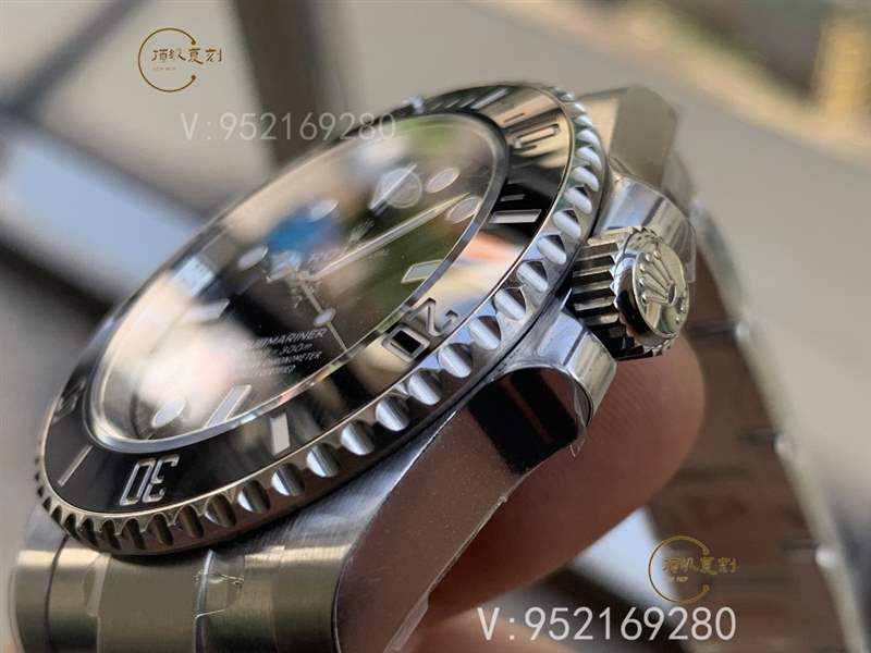 表殼以及表帶,鋼制采用904進口鋼制打造,緞面拉絲。現在市面上冒充各個大廠的水鬼基本都畫蛇添足的再膜上印刷上904鋼,同時配備各種小卡片,很多都是316高拋光。表殼右側的旋入式表把,把頭為止同步原裝,真整解決一眼假的問題,把頭的紋路大小與原裝一起,包括它的把頭高度也是相同,一起頂端攜刻有勞力士家的經典logo,下面的三個小圓點也是同步原裝,細節處理得很到位!底蓋,密底的設計,底蓋的邊際沒有刻字,底蓋的三角坑紋路大小與原裝一致,包括整個底蓋邊際這兒貼合度非常高,其他廠這兒會有顯著的縫隙以及高于底殼的平面!
