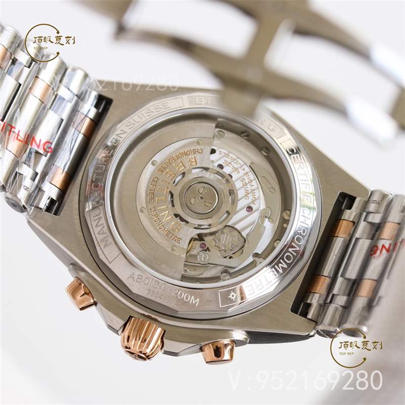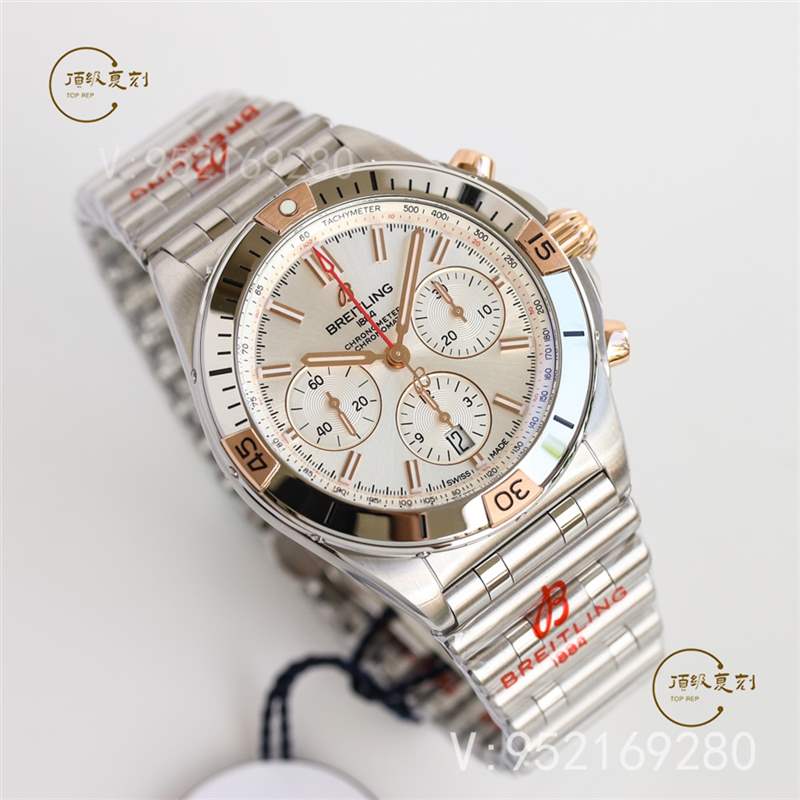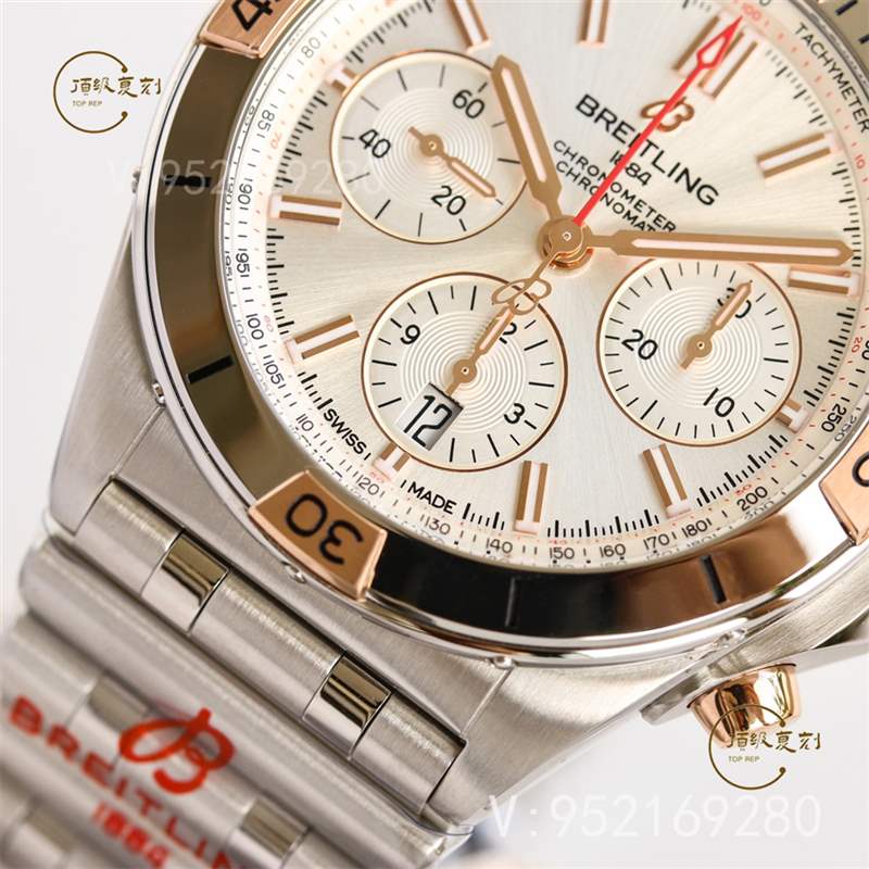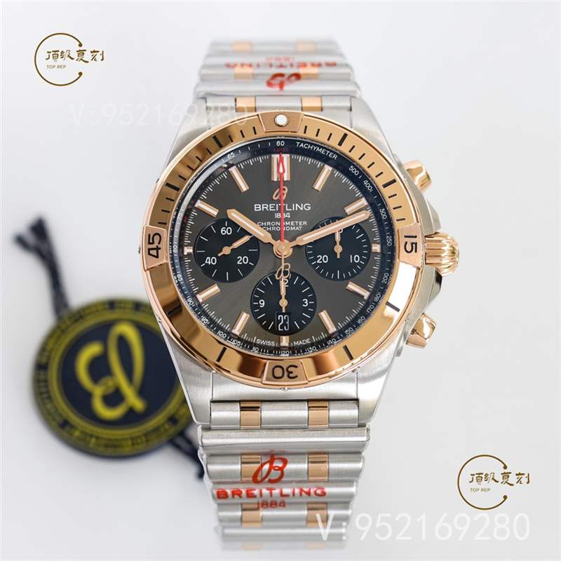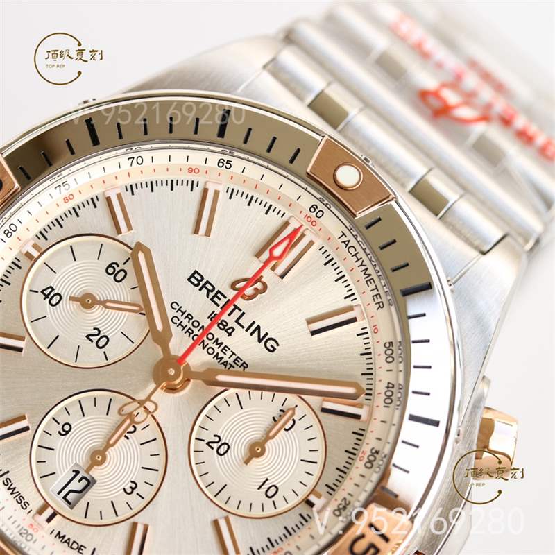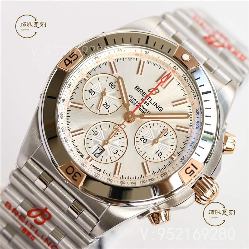 大家好,我是zslhs小編,gf廠是一家百年靈復刻表最出名的廠,旗下涵蓋了百年靈的所有款式,基本上能買到的頂級版本都是zf廠,最近gf廠也是全新復刻一款鋼王表,子彈鏈設計,42mm的尺寸,7750計時機芯,百年靈當中的機械計時系列,這款表做工十分出色,包括外觀設計方面依舊是百年靈經典功能性設計,更具年輕化,下面看看這款GF廠百年靈機械計時鋼王復刻表間金款做工怎么樣!
