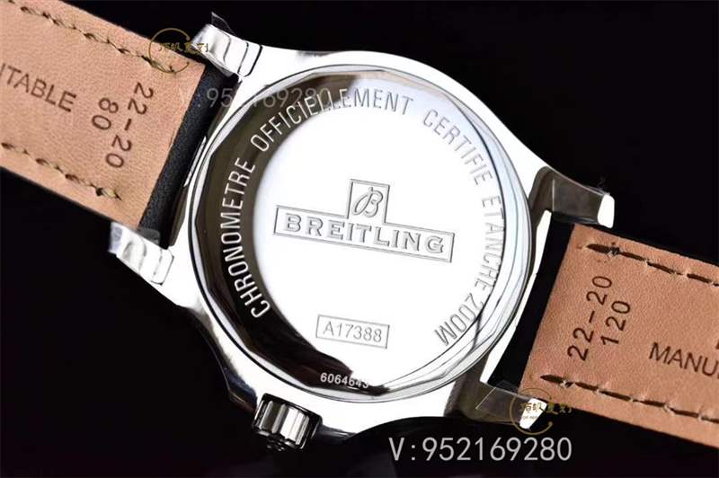 后蓋是密底設計方案,后蓋外界非常五光十色,不僅有字體樣式手工雕琢也有標志的描繪,加工工藝都很好,干脆利落,非常精巧。GF廠后蓋板里邊的鱗型紋理非常美觀,打磨拋光非常詳盡,歷經金屬拉絲處理,實際效果比美真品。機芯選用的是海鷗2836全自動表芯,機械表誤差平穩,非常經久耐用。GF廠百年靈表芯夾板上的處理非常及時,上邊攜刻的金黃英文字母,與直發夾板共同展現圓弧形,近乎完美。