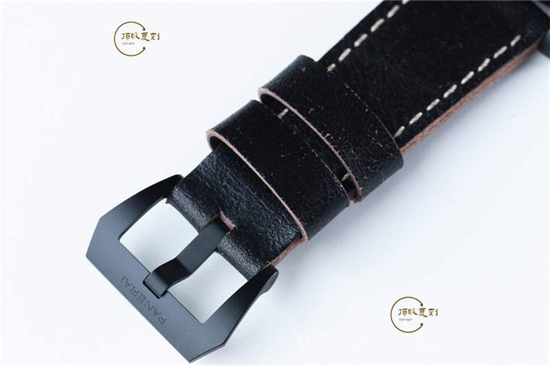 - VS廠沛納海PAM508表帶方面采用的爆裂紋風格的小牛皮材質,非常的粗狂,暗色系的表帶和陶瓷黑色非常的搭配,這個表粗狂中透露出細膩的質感。