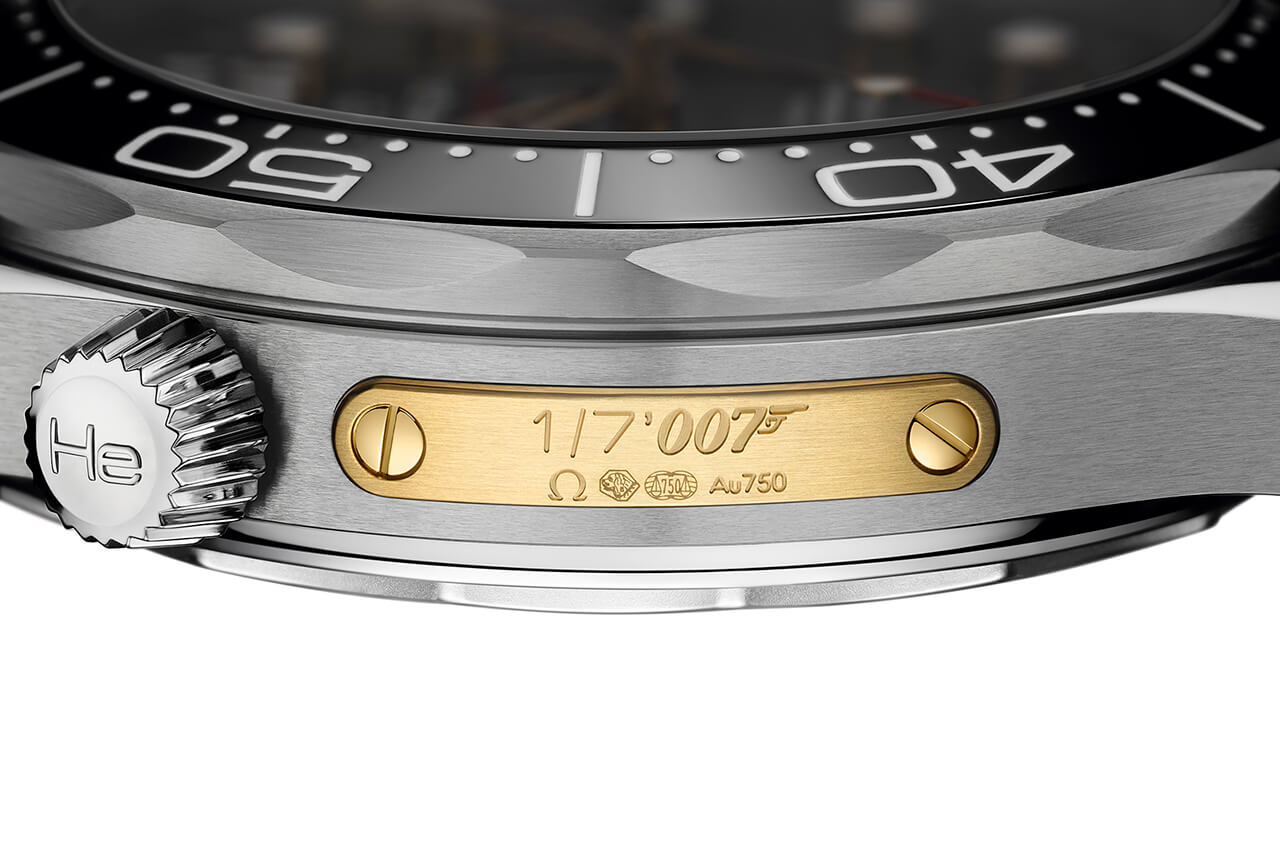 作為 Seamaster 300m,您知道自己在這里做什么。這款堅(jiān)固的潛水表符合專業(yè)標(biāo)準(zhǔn),具有 300 米的防水深度、潛水表圈和該系列標(biāo)志性的棱角分明的外觀。然而,焦點(diǎn)是黑色 PVD ??和陶瓷表盤(pán),刻有 9 毫米槍管的螺旋圖案,子彈頭位于中心。