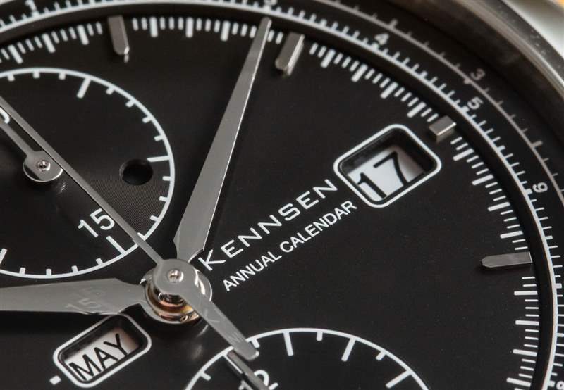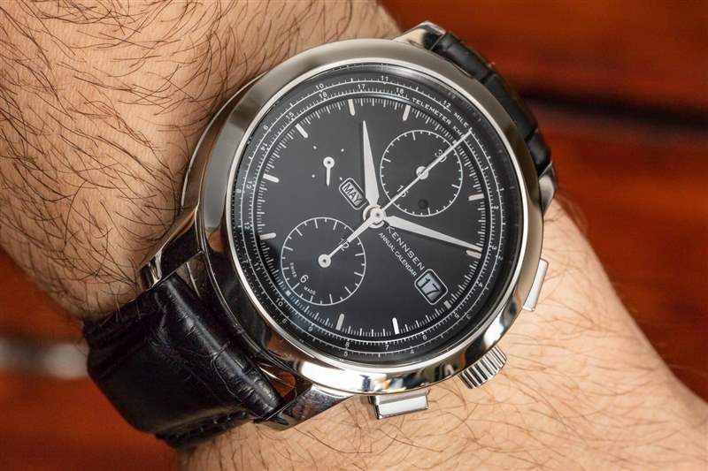 Kennsen 顯然在紙上設計年歷計時碼表時做足了功課,但通常情況下,一旦將手表戴在手腕上,就需要進行更多的改進。一個完美的例子是計時按鈕和表冠的設計。更大的角度計時按鈕是另一個問題的一部分,這使得抓握和拉出表冠變得困難。現在,表冠很難抓住上弦或拉出一兩個位置。要解決這個問題,顯然需要一個不同的表冠——這不是計算機渲染能夠識別的東西。毫無疑問,肯森致力于年歷計時碼表,這就是為什么我相信他們會在不久的將來用這款令人印象深刻的手表改進這些問題。