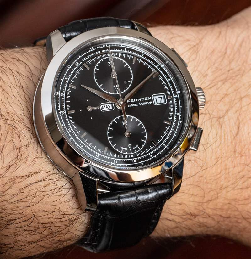 機芯模塊的問題在于,這往往會使手表變得很厚。對我來說,這是 Kennsen 年歷計時碼表最大的問題——這就是相對經典/傳統美學如何與更堅固的表殼比例相得益彰。Kennsen 做得不錯,但訓練有素的收藏家的眼睛會立即看到手表的某些元素對于其他元素來說看起來太大了。