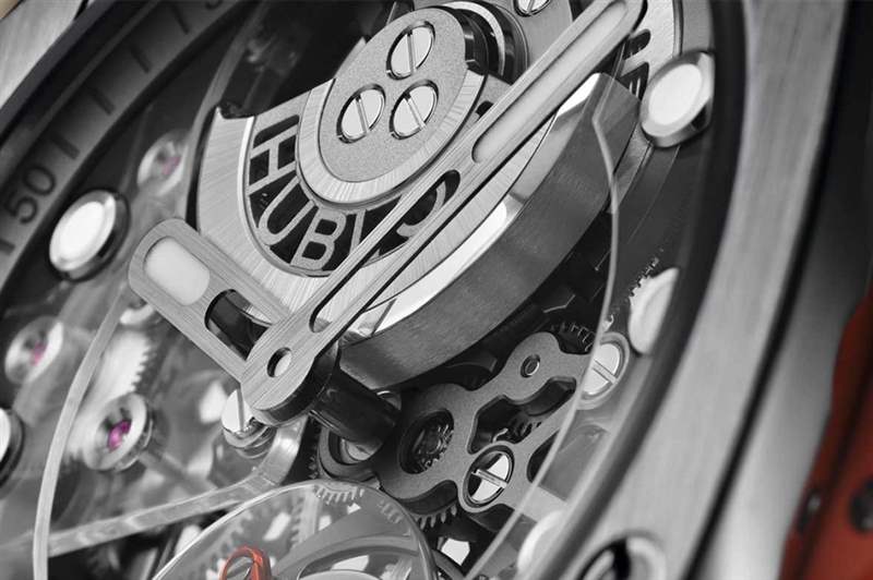 這款Big Bang系列腕表的表殼采用獨樹一幟、個性十足的六邊形造型,在藍寶石表盤、表殼、表底和表帶的鈦金屬蜂巢網眼裝飾的襯托下,整體風格更加鮮明突出。六邊形是自然界中常見的基礎結構元素,例如蜂窩、蛇鱗、菠蘿皮和雪花,具有堅固穩定、節約高效的特點,可無縫銜接或在重疊排列時緊密貼合,因此也廣泛地被應用于現代建筑和設計之中。