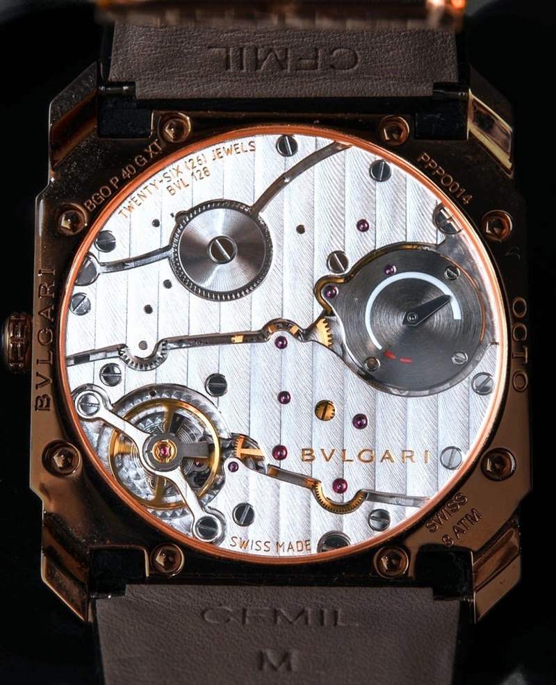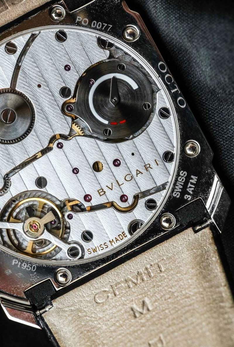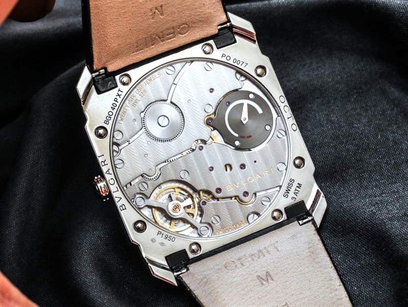 BVL 128 機芯以現(xiàn)代 4 赫茲頻率運行,并具有 70 小時的長動力儲存(對于如此薄的機芯)。機芯通過偏心小秒盤指示小時和分鐘。奇妙的是,寶格麗決定在機芯后部加入一個動力儲存指示器——這一功能對我來說真的提升了“想要”的水平,因為我覺得動力儲存指示器幾乎是必須的(主觀選擇)手動上弦手表。否則,我只是一直強迫性地給手表上弦。