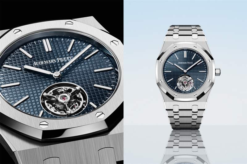 腕表遵循元祖Jumbo的設計,沿用39mm精鋼表殼及1972年原版的「Baignoire」時標及指針,配襯云夜藍50色調的「Petite Tapisserie」格紋表盤。今年Royal Oak半百紀念,無疑是最佳時機給Jumbo賦予超薄飛行陀飛輪,為這枚傳奇豎立里程碑。這枚Royal Oak RD#3官方定價特定,品牌雖沒明言是否限量,但相信跟其他紀念作一樣只生產一年,而且更珍貴稀有。