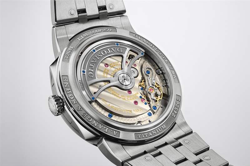 朗格腕表的背面向來是焦點所在,Odysseus搭載的是L155.1 DATOMATIC自動上鏈機芯,零件打磨得順滑亮麗,以德國銀制造的夾板則飾有的格拉蘇蒂條紋;而經黑色鍍銠處理的鏤空擺陀,完全上鏈可提供50小時的動力儲備。