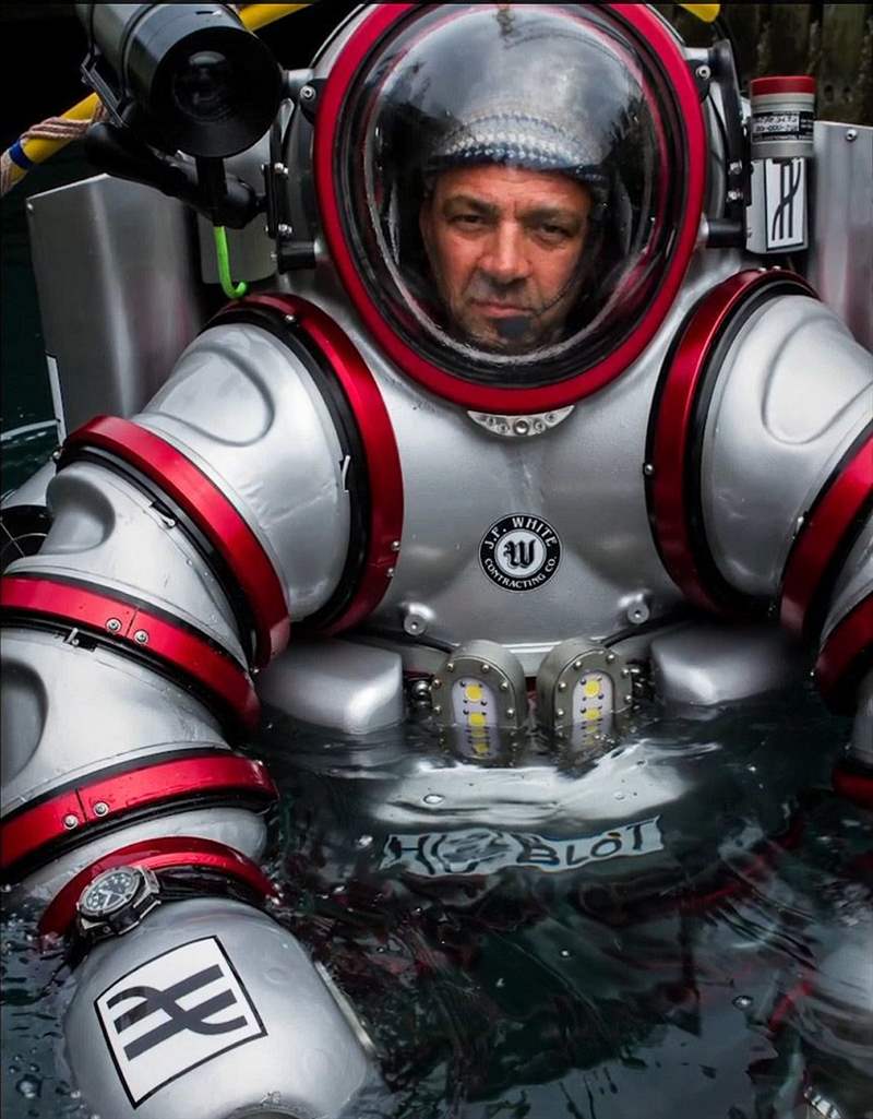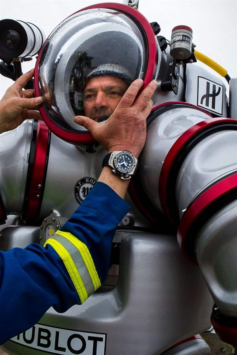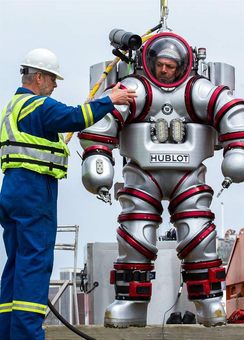 為了協(xié)助科學(xué)家,有人獲得了套裝。什么是套裝?它是一種相對較新的載人潛水服,將傳統(tǒng)的蒸汽朋克潛水服提升到了一個新的水平。該套裝由溫哥華的 Nuytco Research 設(shè)計。JF White Contracting公司至少購買了一個這樣的手表,似乎是借給或租給不同的團體——比如 Hublot 正在與之合作的團隊。