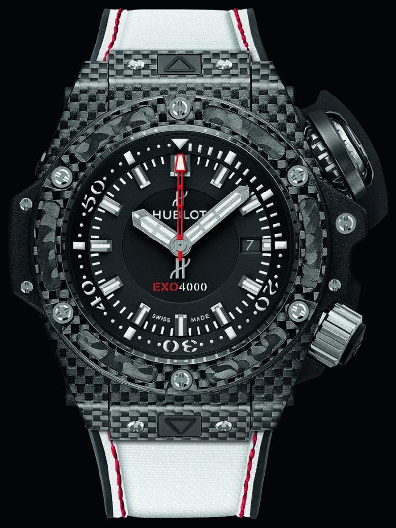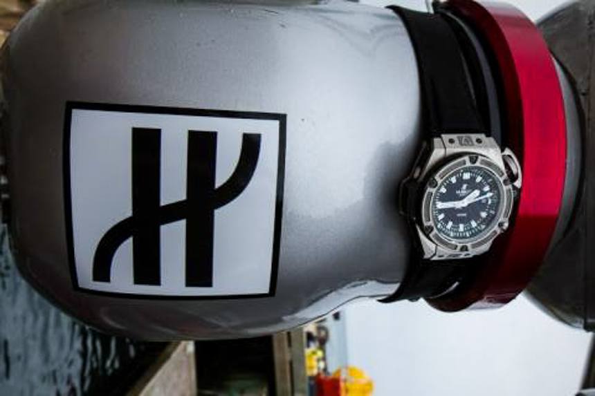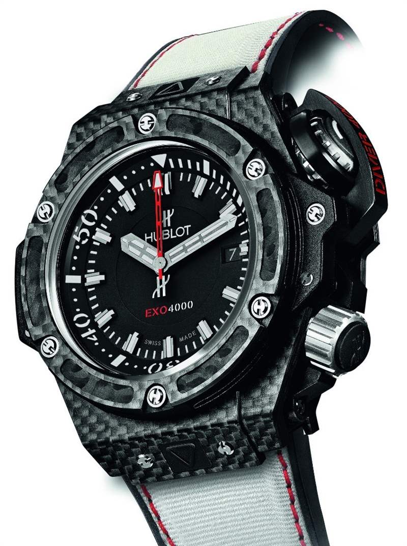 對于這款特殊的 Exosuit,Hublot 不僅將他們的標(biāo)志貼在身上,而且還在手臂上綁上了他們的 Oceanographic Chronograph 4000m Dive 手表之一。具有諷刺意味的是,這款手表的額定潛水深度比 Exosuit 的額定潛水深度要深得多,此時 Exosuit 的額定深度為 1000 英尺(約 300 米)。如果 Exosuit 能夠潛得更深,以便 Hublot 或其他品牌能夠以James Cameron Rolex Deepsea Challenge的風(fēng)格在其上測試他們的潛水表,那將是非常令人印象深刻的。