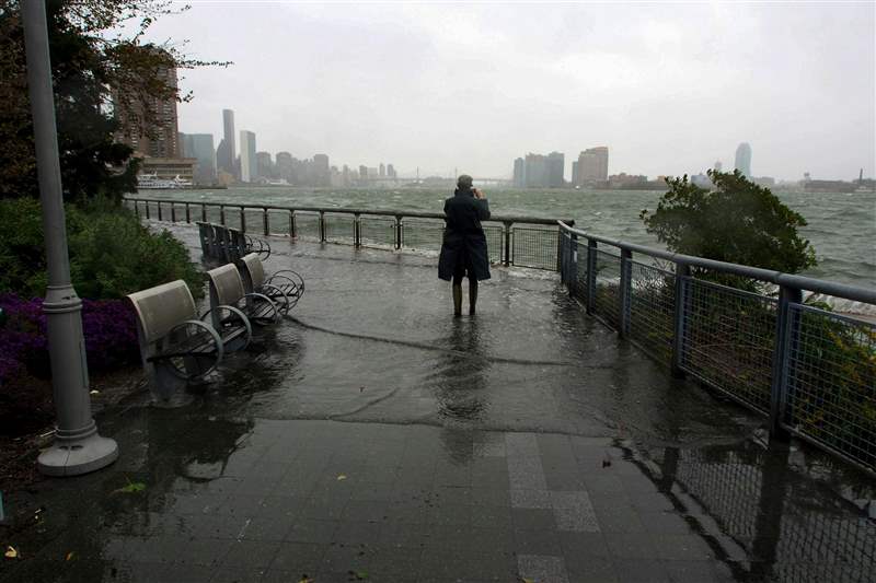 颶風桑迪,紐約,2012 年。隨著漲潮的臨近,東河開始泛濫。照片,作者不慎拍攝。