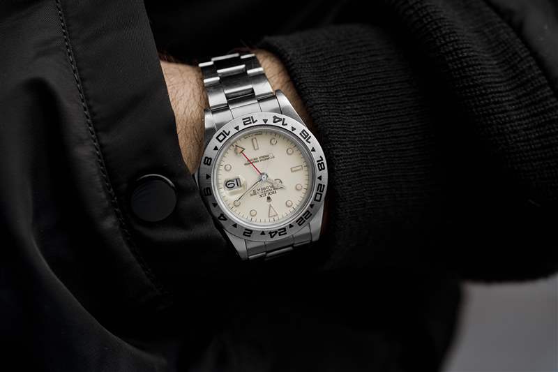 現在,回到這組優(yōu)秀的古董手表。查看上面的幻燈片或前往商店查看本周的全部掉落。否則,請繼續(xù)閱讀團隊從 2022 年第一批年份精選中挑選的商品。Saori 帶我們離開了勞力士的驚人“缺陷”,即 ref。帶有米色“軌道”表盤的 16550 Explorer II,Rich 帶來實用至上的 Aquastar,Sean 用 80 年代的 Heuer Yacht Timer 回憶起他在高中帆船隊的日子。1984 勞力士 Explorer II Ref.?16550 配奶油色“Rail”表盤大村紗織