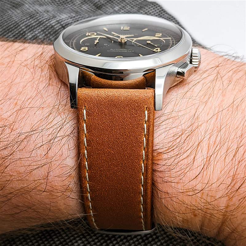 浪琴 (Longines) 將 Record Heritage 與兩種表帶搭配。第一個(gè)是復(fù)雜的多鏈節(jié)不銹鋼表鏈,但我們的評(píng)測(cè)樣品是在馬鞍棕色皮革表帶上送達(dá)的。從表面上看,這是一款經(jīng)典且用途廣泛的選擇,具有均勻的啞光質(zhì)地和干凈的灰白色對(duì)比色縫線(xiàn)。在實(shí)踐中,雖然它的外觀簡(jiǎn)單且用途廣泛,但表帶顯然很硬,可能需要長(zhǎng)時(shí)間的磨合才能完全貼合手腕而不會(huì)感到不適和擠壓。也就是說(shuō),浪琴表 Record Heritage 簡(jiǎn)潔、經(jīng)典的整體外觀應(yīng)該可以搭配各種表帶,打造更加定制的感覺(jué)。廣告留言廣告信息結(jié)束