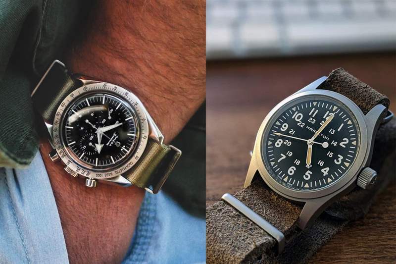 與軍事用途甚有淵源的NATO帶,主要以耐用又不易破損的尼龍制作,也有用皮質的,特點是在表背后有一條環帶,表帶穿過表背后便形成防滑落設計,同時限制了腕表移位,以前的士兵就是靠這方法確保手腕戴實腕表。NATO帶本身非常百搭,綠、黑、灰色可以襯出軍事味,加入條紋又會帶出時尚味。總之無論如何,家中總要有幾條NATO帶隨時候命,為自己的愛表轉換形象。