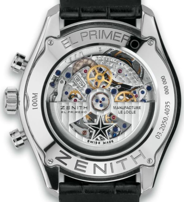 使用美觀的新款El Primero手表風格表殼,使用的機芯是Zenith自制的4035D自動陀飛輪計時機芯。作為一款高拍的El Primero機芯,它的運行速度為36,000bpm,動力儲存為50小時。腕表的高頻率使其比其他腕表(尤其是陀飛輪)更精準。因此,您有一些非常準確的東西,它也是自動的。計時功能以不對稱的方式整齊地集成在表盤上。值得慶幸的是,小表盤非常易于閱讀。