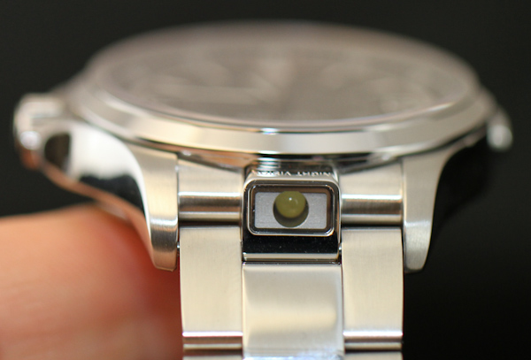 佩戴 Night Vision 手表時,我注意到的第一件事是它讓我想起了我的黑莓手機。為什么?好吧,他們身上都有閃爍的紅燈。盡管我的黑莓只有在收到新電子郵件時才會這樣做(幾乎一直如此)。值得慶幸的是,那些對位于 6 點鐘位置的閃爍紅燈感到惱火的人可以通過快速按下表殼左側的按鈕五次將其關閉。瑞士軍方將其稱為定位燈,目的是讓您在絕對黑暗中找到您的手表。它每十秒閃爍一次。這有點酷,就像我說的那樣,它可以被激活或停用。