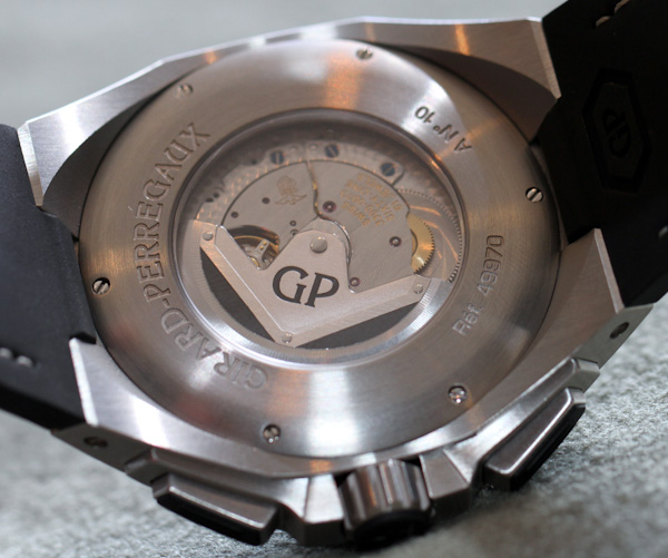 與 Sea Hawk 的旋轉潛水表圈不同,Chrono Hawk 是光滑的拉絲鋼表圈。我不得不說,我真的很喜歡 Girard-Perregaux 決定不在設計中的某個地方放置測速儀。很多運動手表都這樣做,我很高興看到他們抵制。通過手表的背面,您可以看到機芯和整潔的全新自動轉子設計。廣告留言廣告信息結束