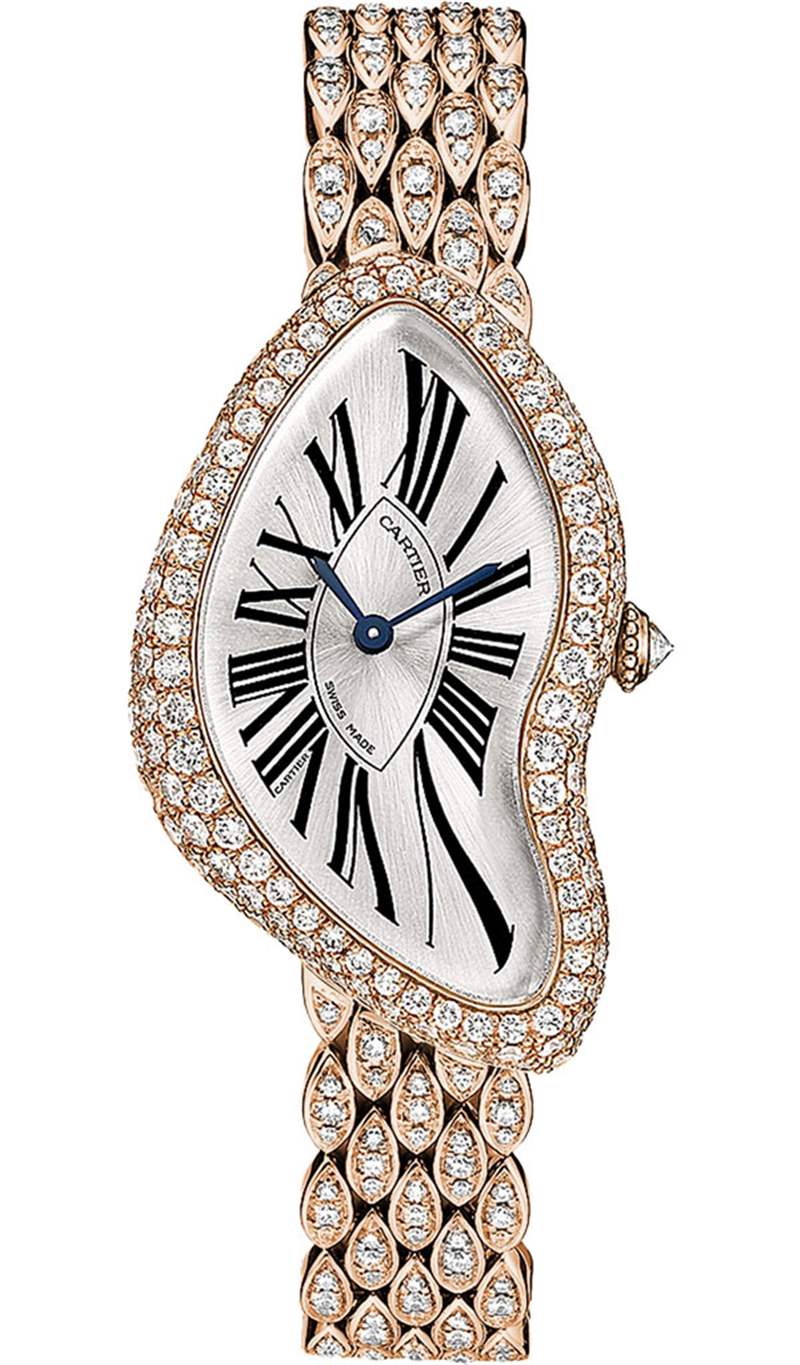 快進到現在,Crash 成為一款前衛的女士手表,金表鏈上鑲有鉆石。不完全是該系列的合乎邏輯的延伸,但卻是 2013 年吸引卡地亞關注的一款恰到好處的獨特產品。最初的黃金型號搭配簡單的皮革表帶,現在配有 18k 玫瑰金或白金“淚珠鏈”女式手鏈高手段。雖然手鏈可選擇鑲嵌鉆石,但 2013 年限量版的所有版本均鑲嵌鉆石。這有點不幸,因為表殼上的鉆石裝飾隱藏了原版的一些更有趣的“融化”細節。表殼的“滴水”外觀仍然存在,但 2013 年的版本比古怪的原版更加精致和干凈。廣告留言廣告信息結束