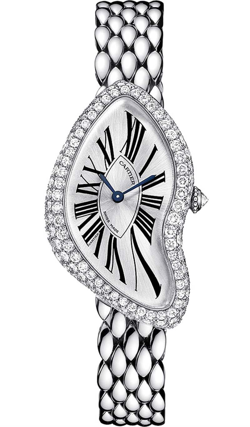 2013 年卡地亞 Crash 手表比原版更大,寬 25.5 毫米,高 38.45 毫米。內部將搭載手動上鏈機械機芯,整個 2013 年系列每款標準表鏈限量 267 枚,全鑲鉆表鏈 67 枚。這款手表全金鑲嵌 2.15 或 4.27 克拉的寶石,是僅在卡地亞特設精品店有售的精品,而且通常只能通過特殊訂單購買。卡地亞充分意識到這樣的手表(尤其是在其價位上)至少可以說是一種小眾型號。