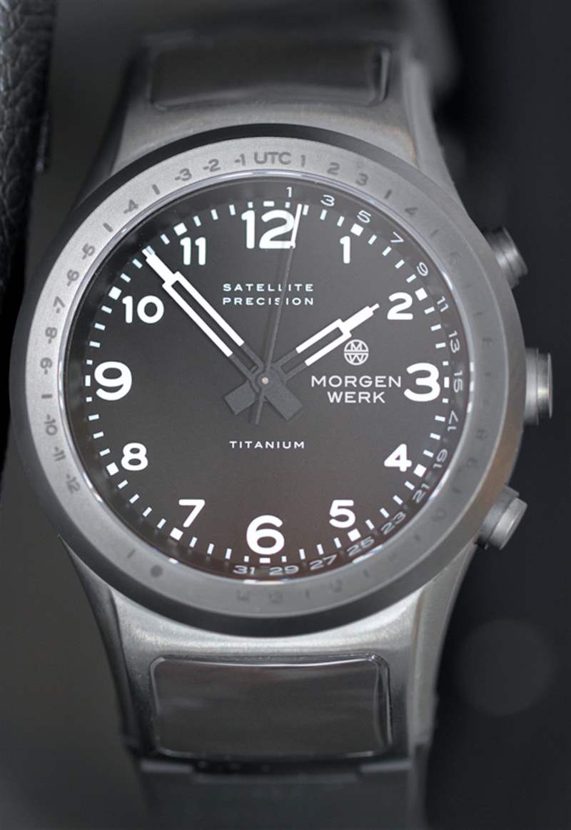 Mark 1 將是最簡單的 Morgenwerk Satellite Precision 手表,采用 43.8 毫米寬(14 毫米厚)的表殼,您可以選擇鋼制或鈦制表殼。表盤是純模擬的,但它所顯示的不僅僅是時間。使用表殼上的按鈕,您可以看到日期,以及您當前所在時區的指示器。您還可以查看您所在的地方是否實行夏令時。高對比度表盤既實用又不會太乏味。它的設計清晰可辨,似乎將軍事風格與包豪斯美學融為一體。再一次,如此日耳曼,我喜歡它。