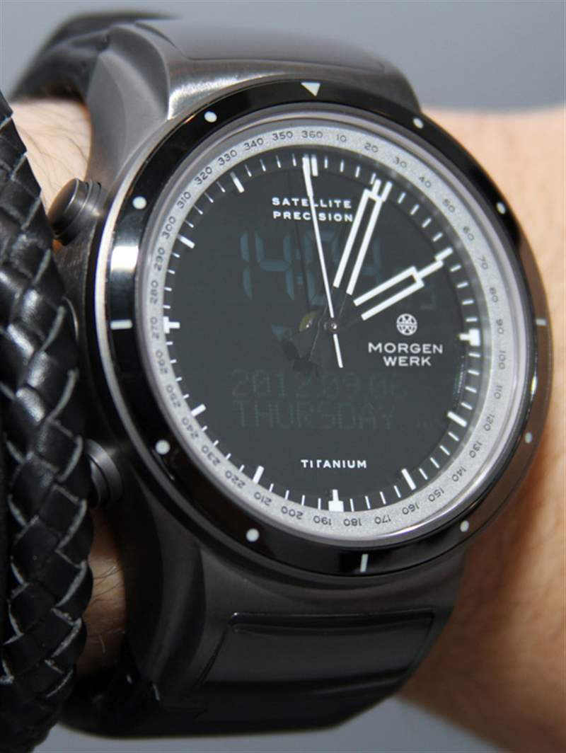 有了 Morgenwerk Satellite Precision M3 模型,事情開始變得更加有趣。這些是模擬/數字手表,在模擬表盤后面包含一個負 LCD 面板(暗屏上的指示燈)。這就是 Morgenwerk 在功能方面與卡西歐、天梭和百年靈等品牌真正競爭的地方。Mark 3 手表包含額外的傳感器,還包括指南針、溫度計、氣壓計和高度計功能。您將結合使用指針和數字顯示屏來讀取所有這些信息。M3 還具有完整的日歷(具有吸引人的顯示屏)、計時碼表、鬧鐘和天氣預報工具。此外,各種模型和信息顯示非常吸引人,而且操作起來相當人性化。