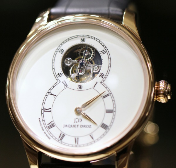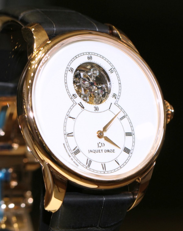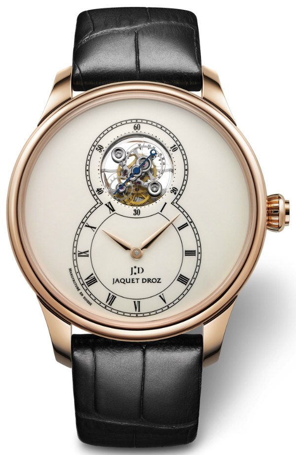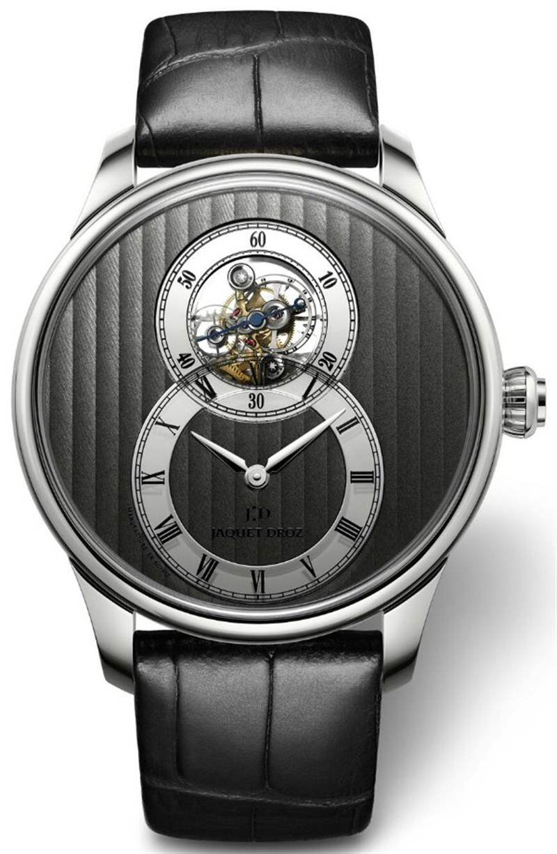 這不是雅克德羅 (Jaquet Droz)的第一款陀飛輪腕表,但它是最優雅的一款。這款 Grande Seconde Tourbillon 概念簡單,采用標準數字 8 表盤設計,并將外觀優雅的陀飛輪插入秒盤。最終的外觀是華麗的,陀飛輪有一個巧??妙的秘密,但你能看出手表名稱的有趣諷刺嗎?