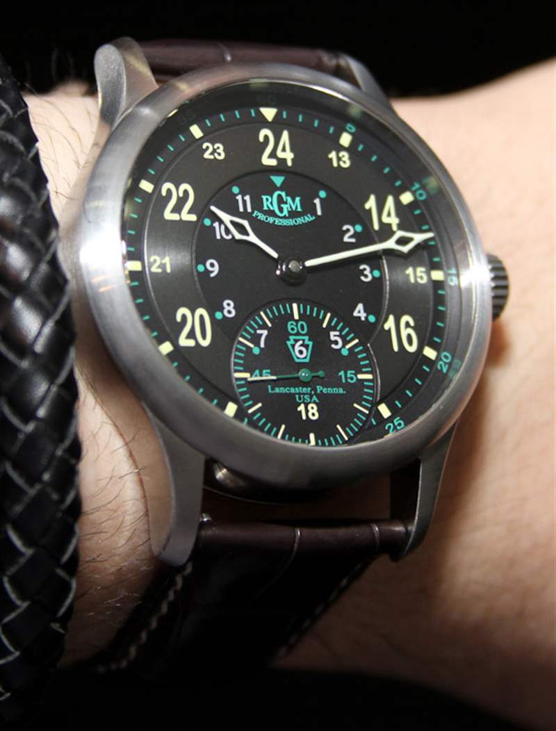 eBay 再次出手相救。我發(fā)誓,我與手表主管和設(shè)計(jì)師進(jìn)行了很多以“我在 eBay 上得到它”結(jié)尾的對(duì)話。許多品牌使用古董手表和樂(lè)器作為新時(shí)計(jì)的基礎(chǔ)——至少?gòu)脑O(shè)計(jì)的角度來(lái)看是這樣。大多數(shù)基于飛機(jī)駕駛艙儀表的手表都有設(shè)計(jì)師檢查實(shí)際儀表。他們要么去找飛機(jī),要么在網(wǎng)上買(mǎi)東西——通常是在 eBay 上。例如, RGM在網(wǎng)上挑選了幾個(gè)最初由 Hamilton 制造的很酷的二戰(zhàn)時(shí)期駕駛艙時(shí)鐘,并決定根據(jù)這個(gè)主題制作一款手表。在RGM腕表旁邊看到原裝很酷