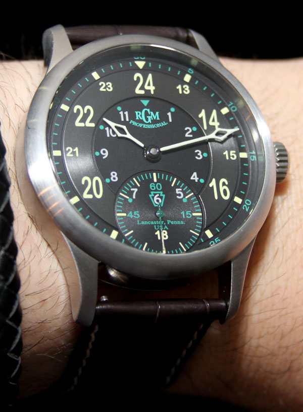 RGM 并沒(méi)有為這款手表制作新機(jī)芯,但駕駛艙時(shí)鐘的精神確實(shí)存在于這塊表中。然而,它只告訴時(shí)間。關(guān)于 RGM 801 Aircraft 零件,我首先注意到的是表殼上精美的拉絲飾面。RGM 是一個(gè)美國(guó)品牌,他們自己制作所有外殼和許多機(jī)芯。這款腕表兼具兩者——誕生于賓夕法尼亞州。42 毫米寬的精鋼表殼做工非常精美——許多競(jìng)爭(zhēng)對(duì)手的飾面讓人很容易嗤之以鼻。表盤(pán)和底蓋上的藍(lán)寶石水晶。雖然表盤(pán)顏色不同,但它們是獨(dú)一無(wú)二的,RGM 改變了色調(diào),恰到好處地使這件作品看起來(lái)優(yōu)雅。