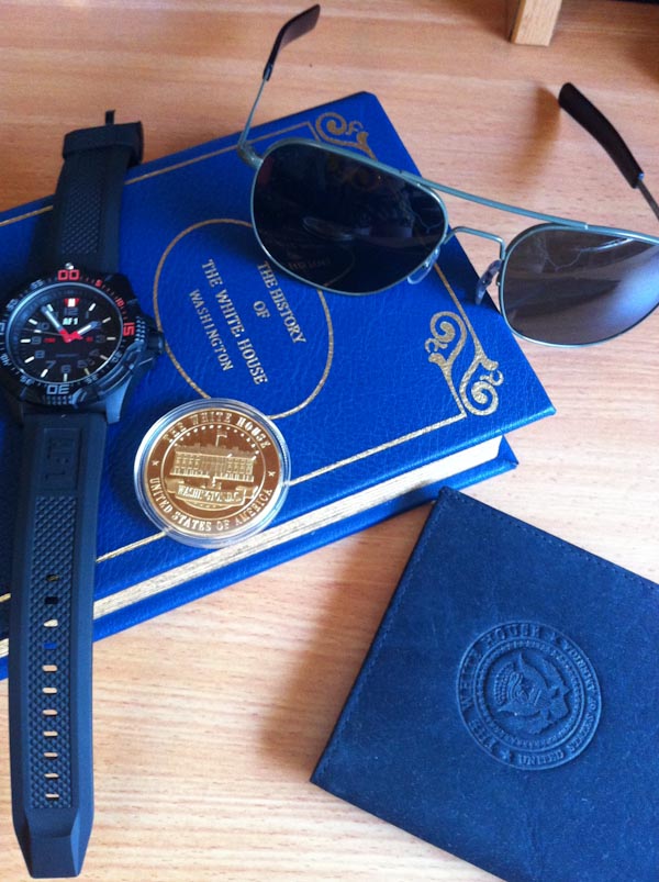 其次,手表的盒子,它可能是我見過的最好看的手表盒子之一,它看起來就像一本標有“白宮華盛頓史”的書,盒子里也是一個白宮挑戰硬幣,這是一個美麗的展示品和一個很好的話題。