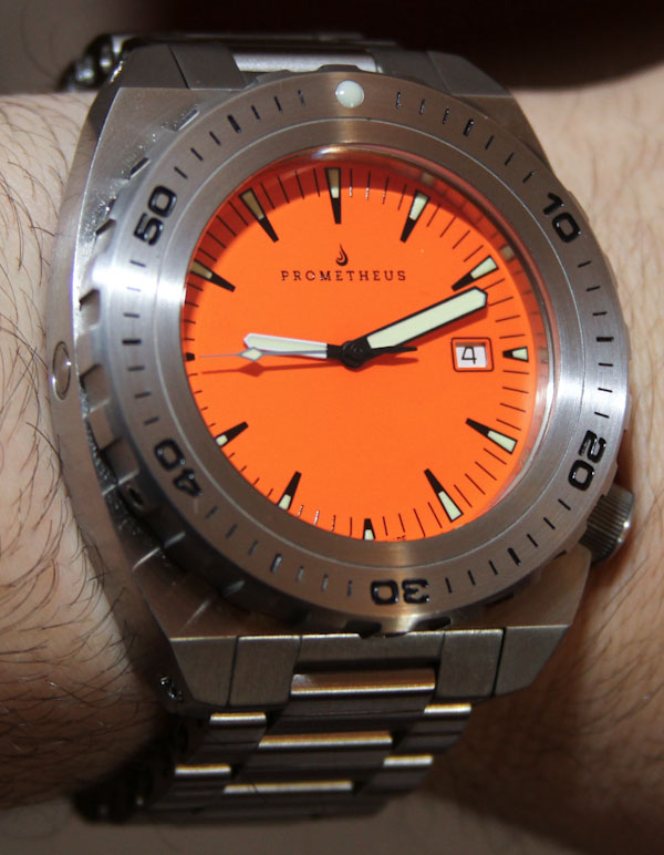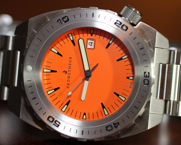 表盤(pán)很好,但可能是我唯一建議普羅米修斯改進(jìn)的地方。在我看來(lái),他們感覺(jué)有點(diǎn)平淡。這尤其是由于表盤(pán)的深度以及表殼又大又厚的緣故。還有其他版本的表盤(pán)帶有應(yīng)用的小時(shí)指示器,可能感覺(jué)不那么平坦。這沒(méi)什么大不了的,但值得一提。