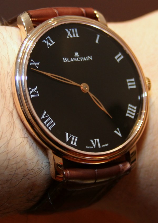 只是一塊漂亮的寶珀大尺寸薄表?不完全是。從表面上看,這款 Villeret 系列中的帥氣時計采用相當薄的手動上鏈機芯和極簡主義外觀的黑色或白色琺瑯雙手表盤。表盤上只有那些標志性的寶珀 18k 金葉形指針和琺瑯羅馬數(shù)字時標。最有趣的是手表背面的內容。
