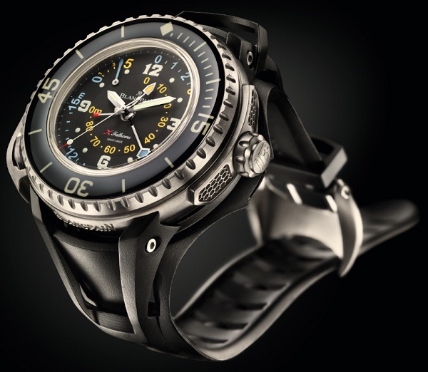 寶珀剛剛發(fā)布了宣傳了一段時(shí)間的新款X Fathoms潛水表。新的超級(jí)潛水員在迪拜推出,包含一個(gè)機(jī)械深度計(jì)以及一些有趣的功能。其中之一是表盤上始終運(yùn)行的逆行五分鐘計(jì)數(shù)器。這意味著用于測(cè)量減壓時(shí)間。世界上沒(méi)有其他潛水表具有這樣的外觀。
