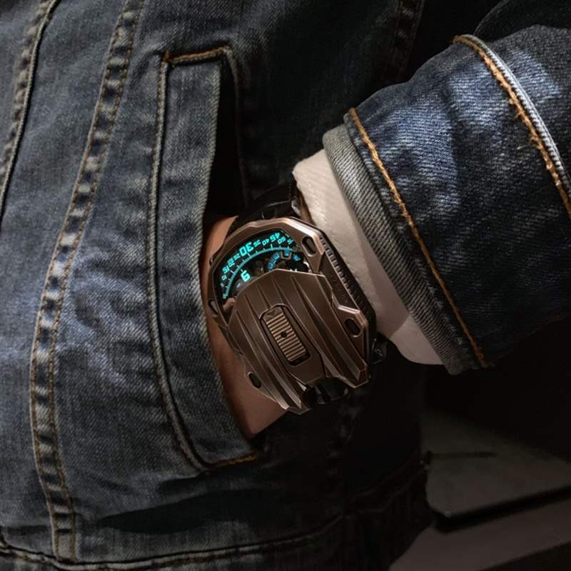 Urwerk一向走科幻前衛的設計路線,獨特外表加非一般的閱時方式,上手絕對搶眼。這枚UR-105 Maverick造型如宇宙飛船,表殼則采用青銅,夜光數字及刻度加強科幻感。設計不僅自此一家,腕表還內藏Urwerk研發的復雜機芯。