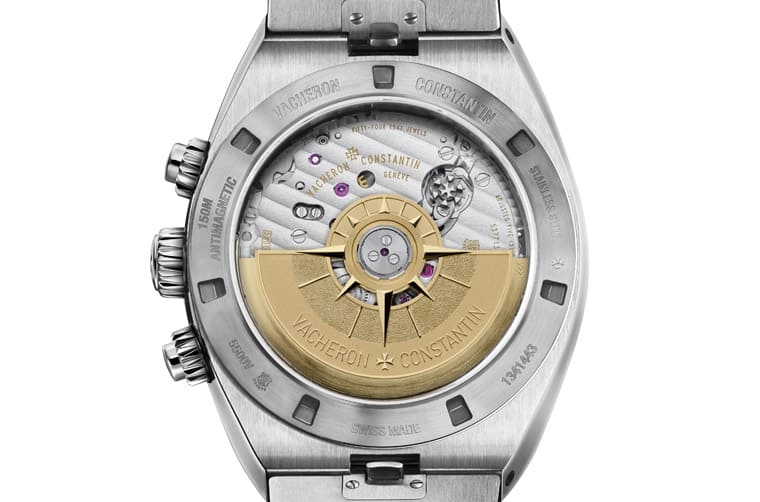 Overseas計時碼表表背透明底蓋可見手表搭載的5200自動機芯,其22K金自動盤飾有呼應系列旅行精神的風向玫瑰羅盤圖案、機芯底板以日內瓦波紋修飾,展現符合日內瓦印記要求的高作工水準。表款的計時功能由導柱輪搭配垂直離合掌控,后者的優點在于能夠有效降低計時指針在啟動時產生的顫動情況,細看導柱輪會驚喜發現它的造型也含有馬耳他十字的概念,整體風格相當一致,至于機芯的品質既然是出自VC手筆,其可靠程度也是公認的優異,這部分亦無需贅言。