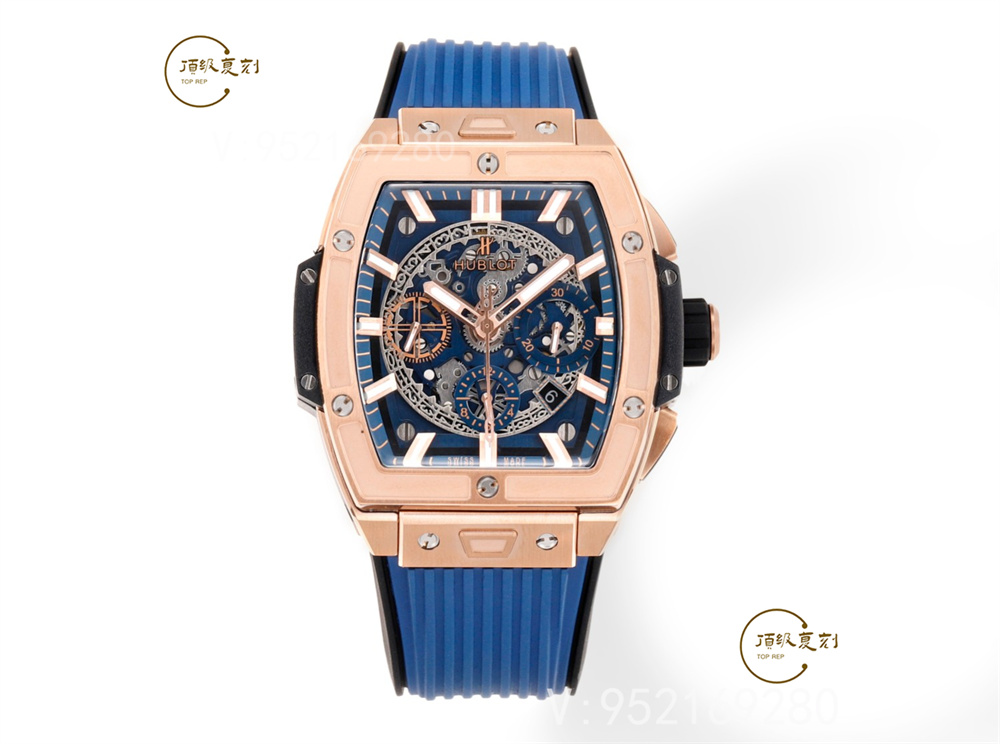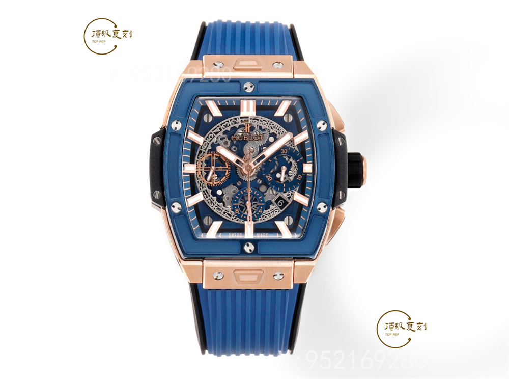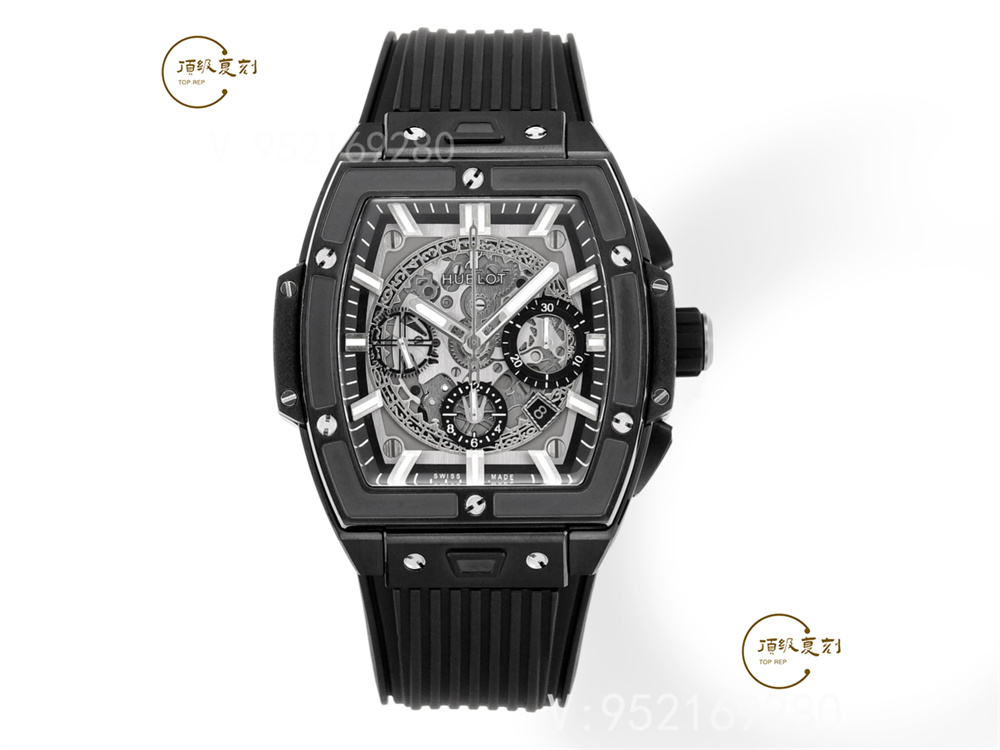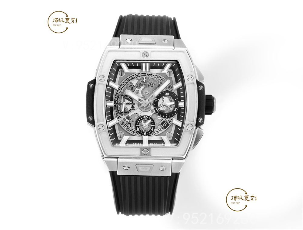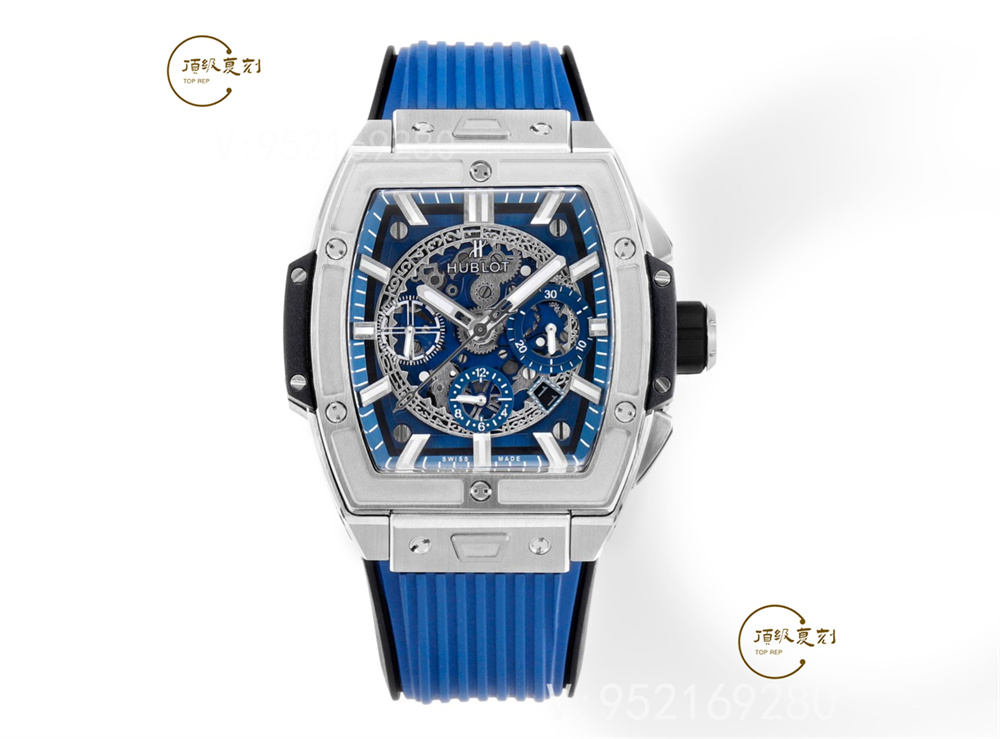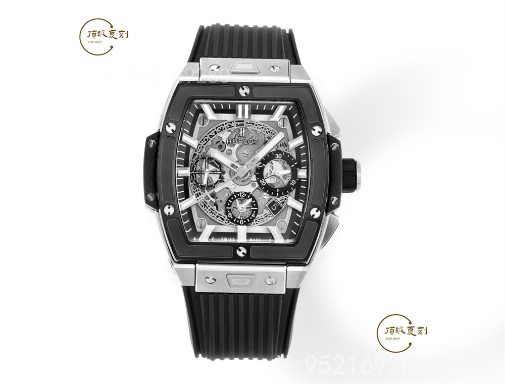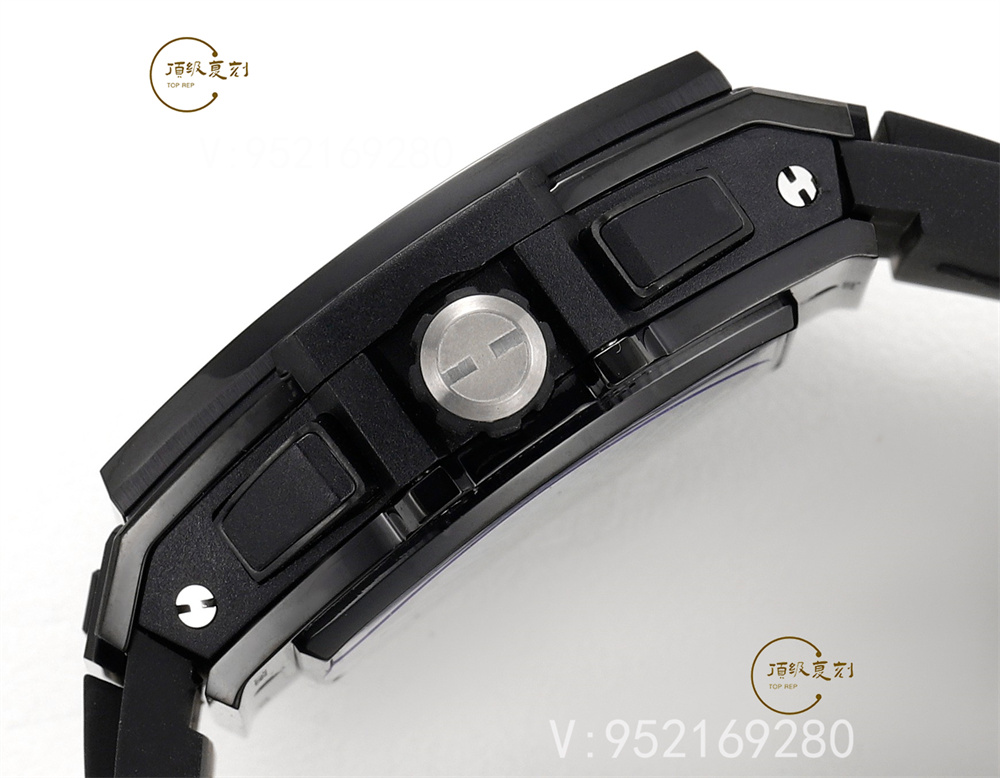 整表采用宇舶最具代表的H形螺絲(如果大家要玩拆解的話某寶很多專拆宇舶的螺工具),表殼主體為鈦金屬材質(zhì),透明藍(lán)寶石盤面顯露出裸露的機芯,整體混為一體,強烈的金屬質(zhì)感,外加立體多層次的元素組合,大家可以參考鐵血戰(zhàn)士這個電影,這個表采用的元素很多是來自于哪個靈感!硬暴力美學(xué)設(shè)計,凸起的肌肉線條!搭配藍(lán)寶石水晶玻璃表鏡,表冠采用鈦金屬與橡膠材質(zhì)制成,表全透設(shè)計!正品機芯采用HUB 4700機芯,動力儲備為50個小時,復(fù)刻版本采用7750機芯代替,滿動力也是四十多小時(配合手動上鏈)。