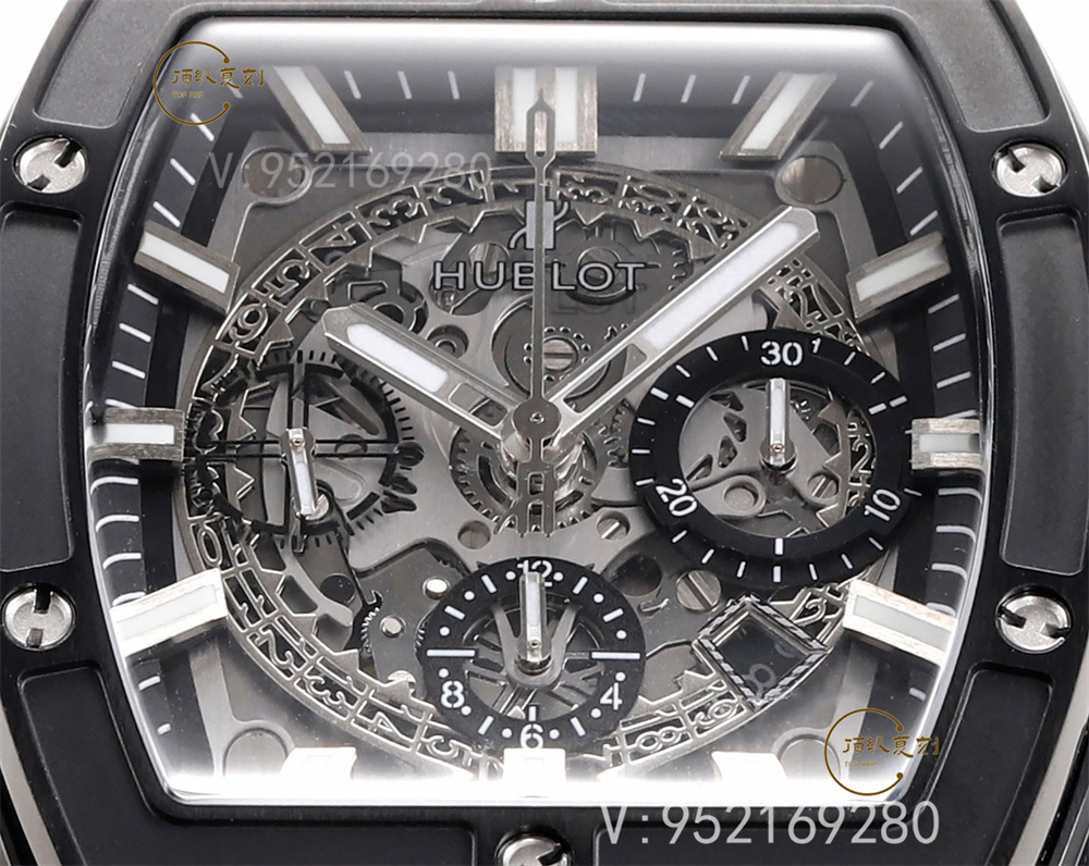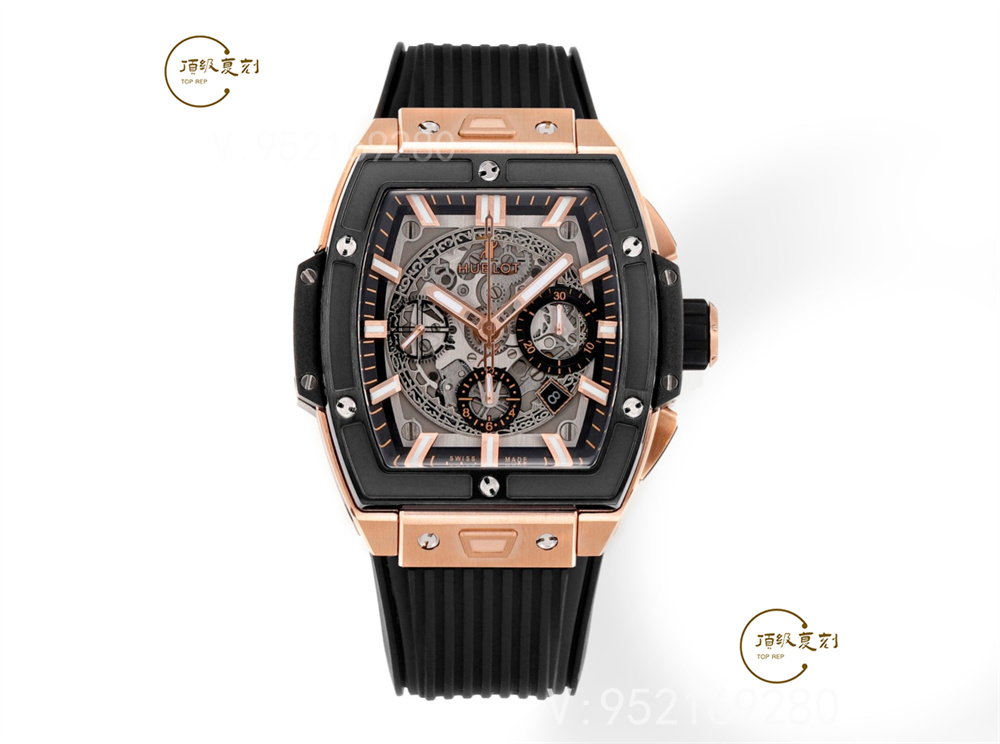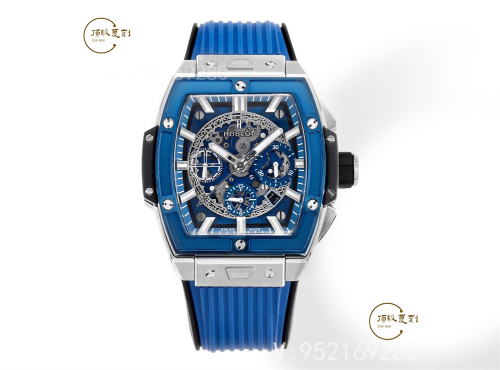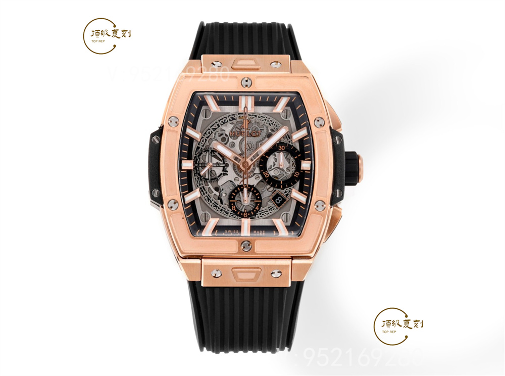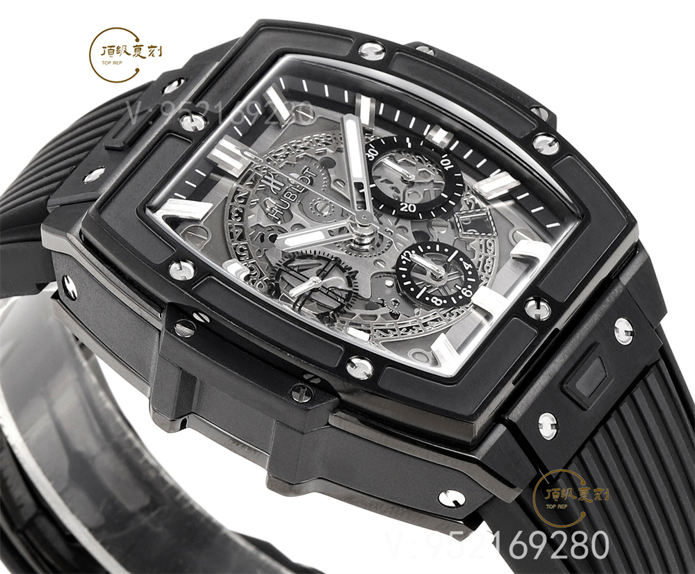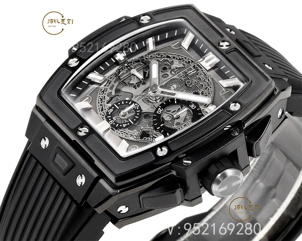 整表采用宇舶最具代表的H形螺絲(如果大家要玩拆解的話某寶很多專拆宇舶的螺工具),表殼主體為鈦金屬材質(zhì),透明藍(lán)寶石盤面顯露出裸露的機芯,整體混為一體,強烈的金屬質(zhì)感,外加立體多層次的元素組合,大家可以參考鐵血戰(zhàn)士這個電影,這個表采用的元素很多是來自于哪個靈感!硬暴力美學(xué)設(shè)計,凸起的肌肉線條!搭配藍(lán)寶石水晶玻璃表鏡,表冠采用鈦金屬與橡膠材質(zhì)制成,表全透設(shè)計!正品機芯采用HUB 4700機芯,動力儲備為50個小時,復(fù)刻版本采用7750機芯代替,滿動力也是四十多小時(配合手動上鏈)。